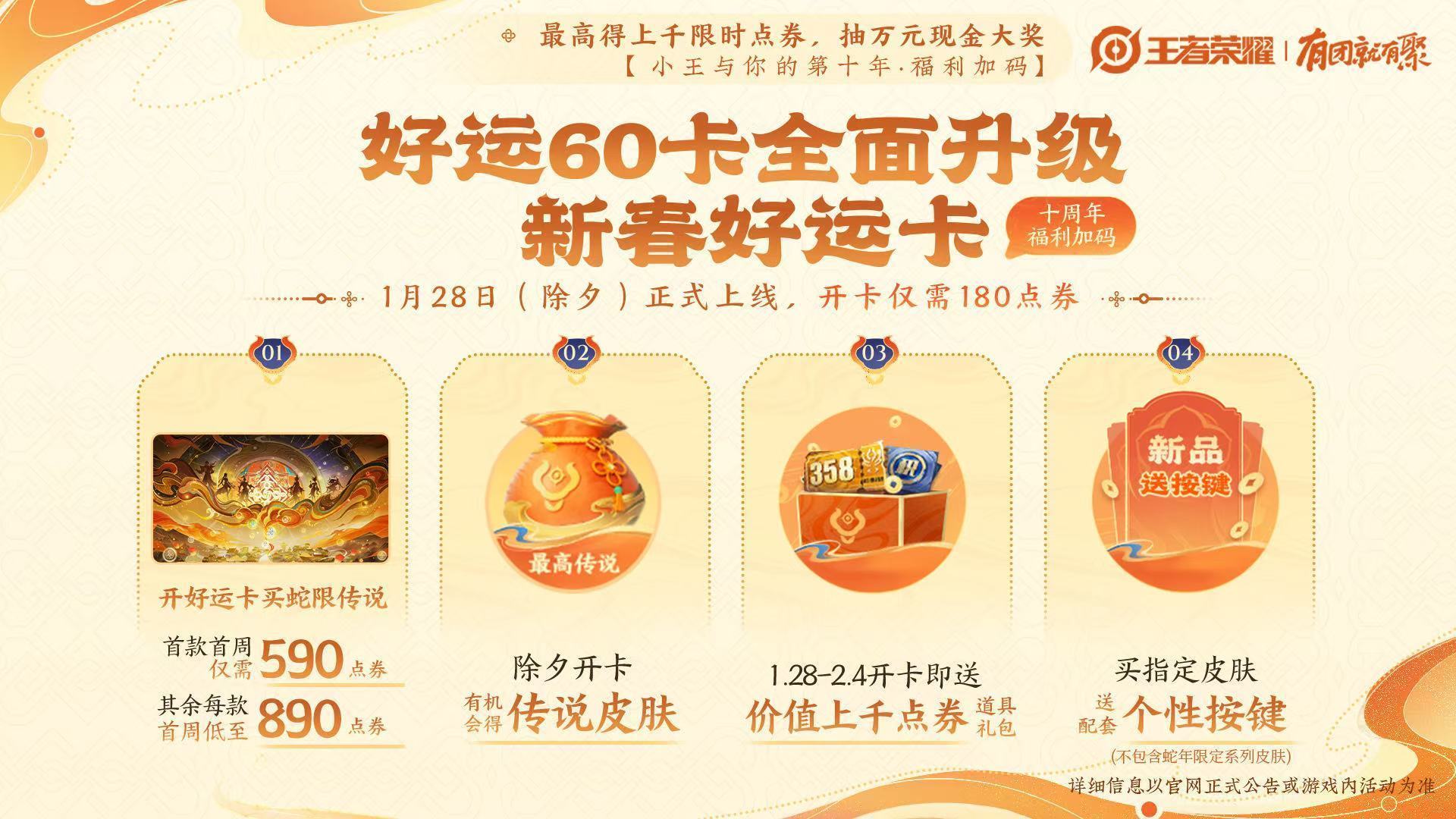 只要你有入手春节档皮肤的打算,180点券的“新春好运卡”必须拥有,因为只有在解锁好运卡之后,才能享受到接下来的折扣和福利,比如首款年限皮肤590点券,其余年限皮肤890点券的良心价格。